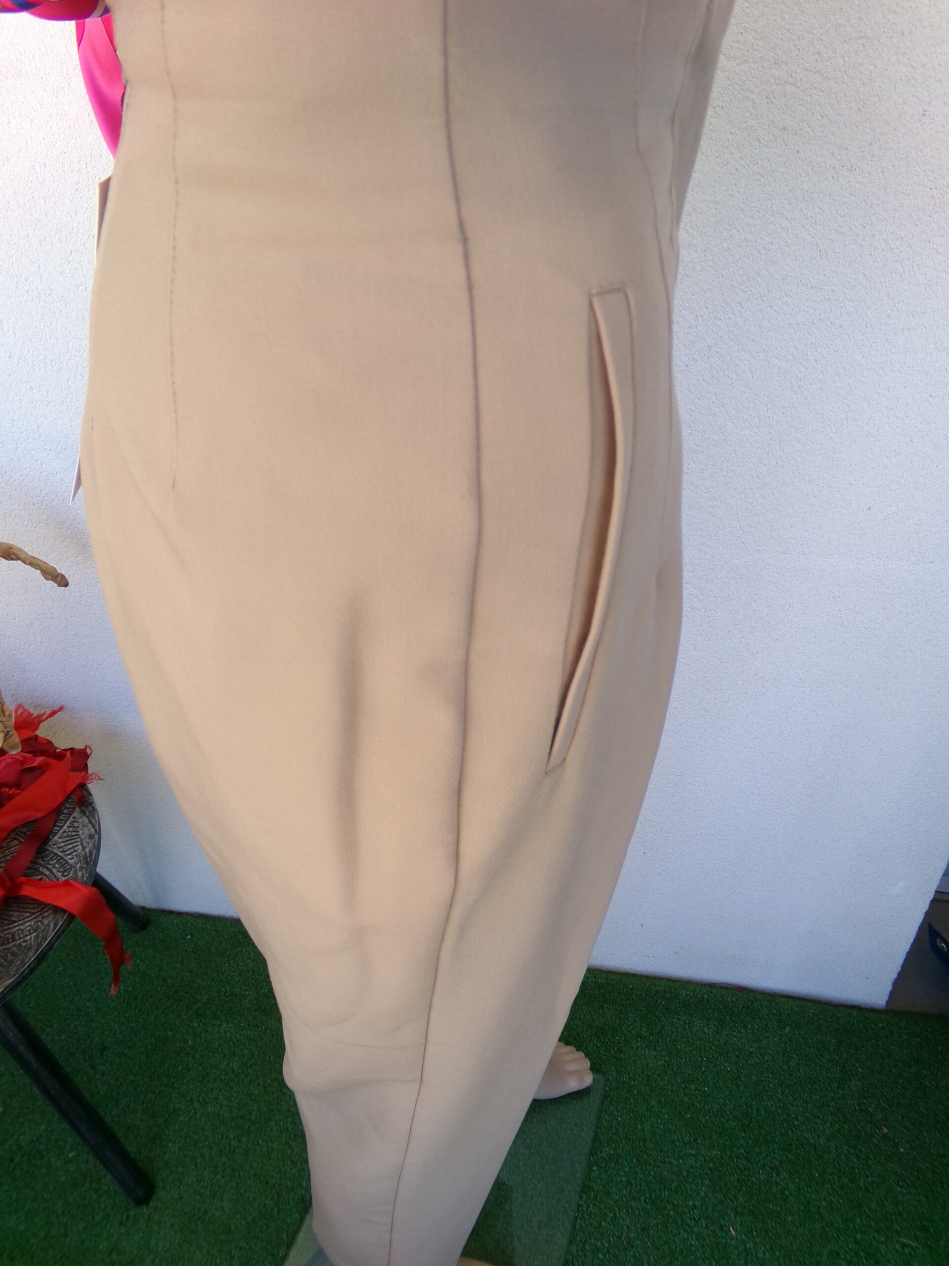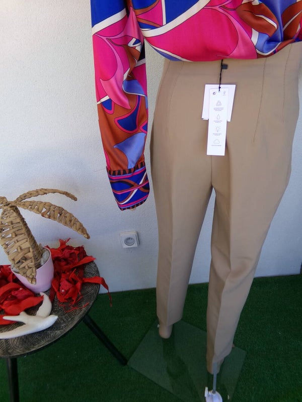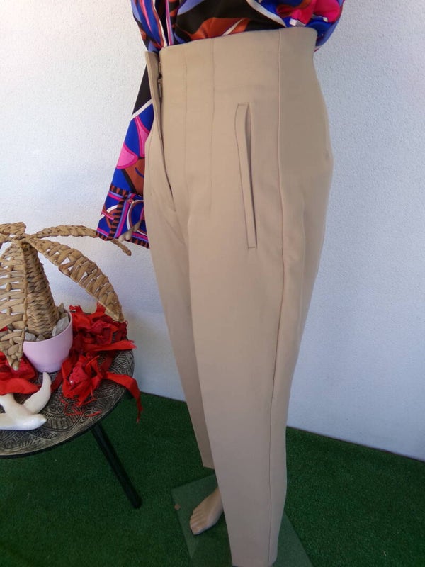 Pantalon beige, poches zippées de chaque côté, coupe droite, deux pinces, très confortable et vous serez sublime !