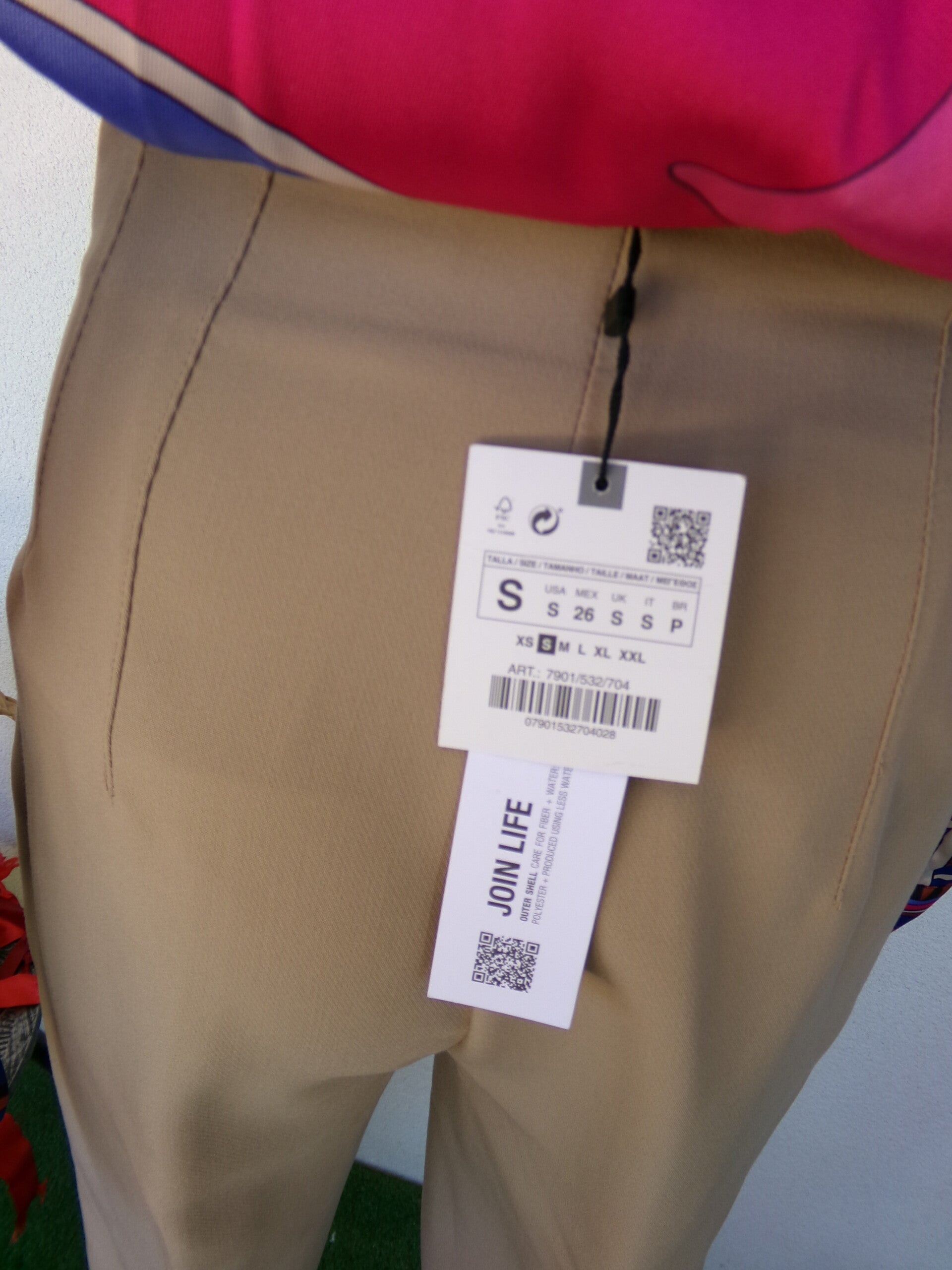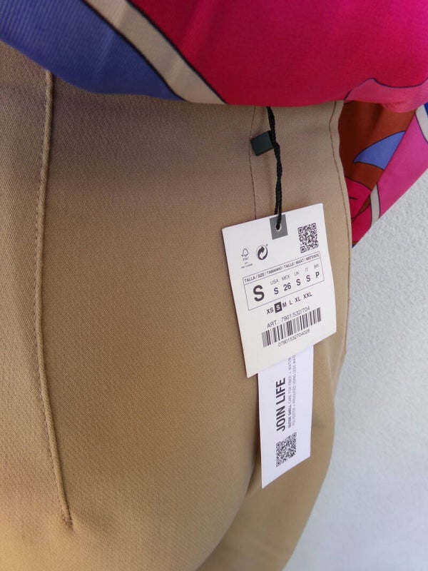 Pantalon beige ZARA poches zippées, deux pinces Coupe Droite, NEUF