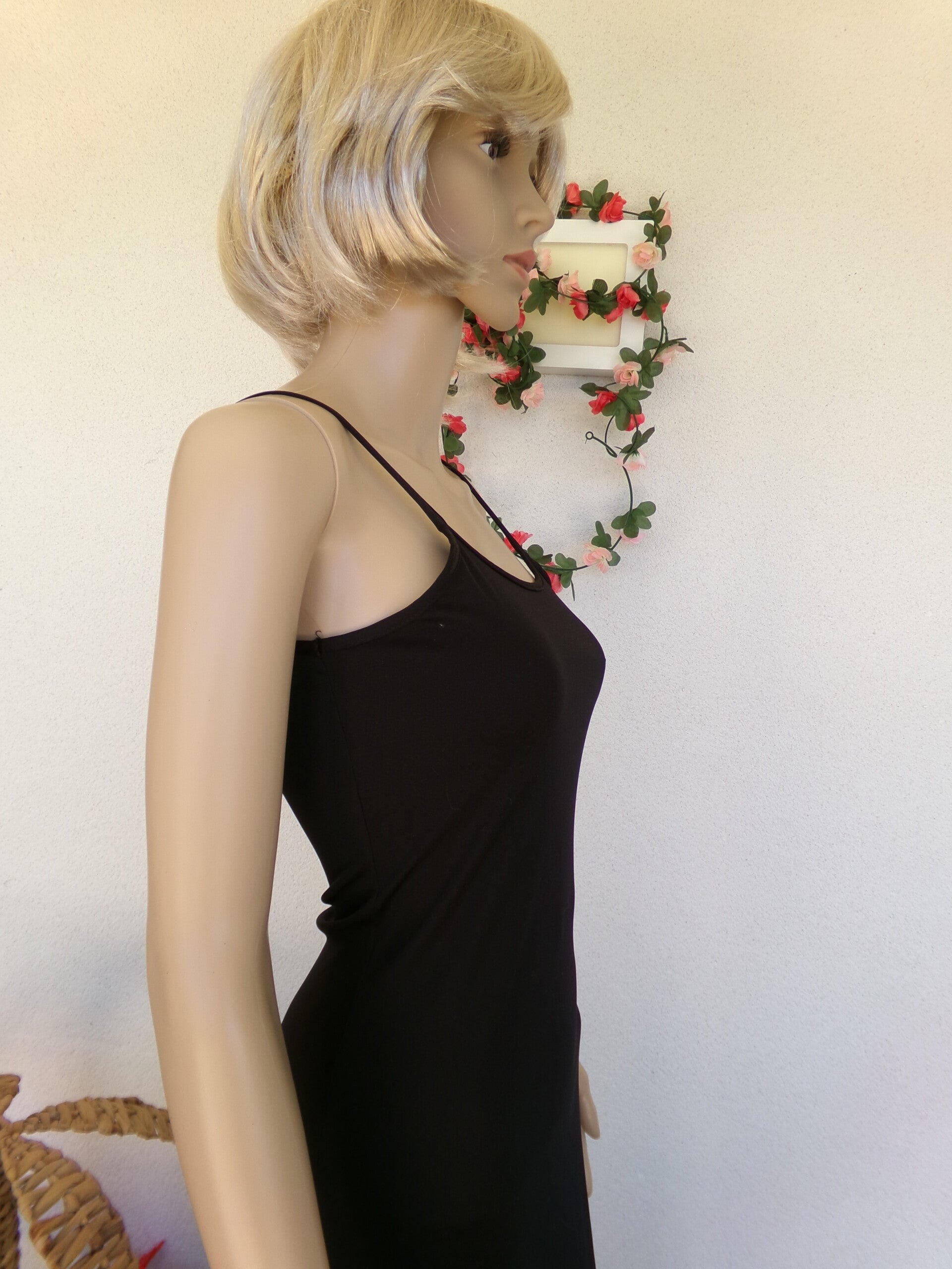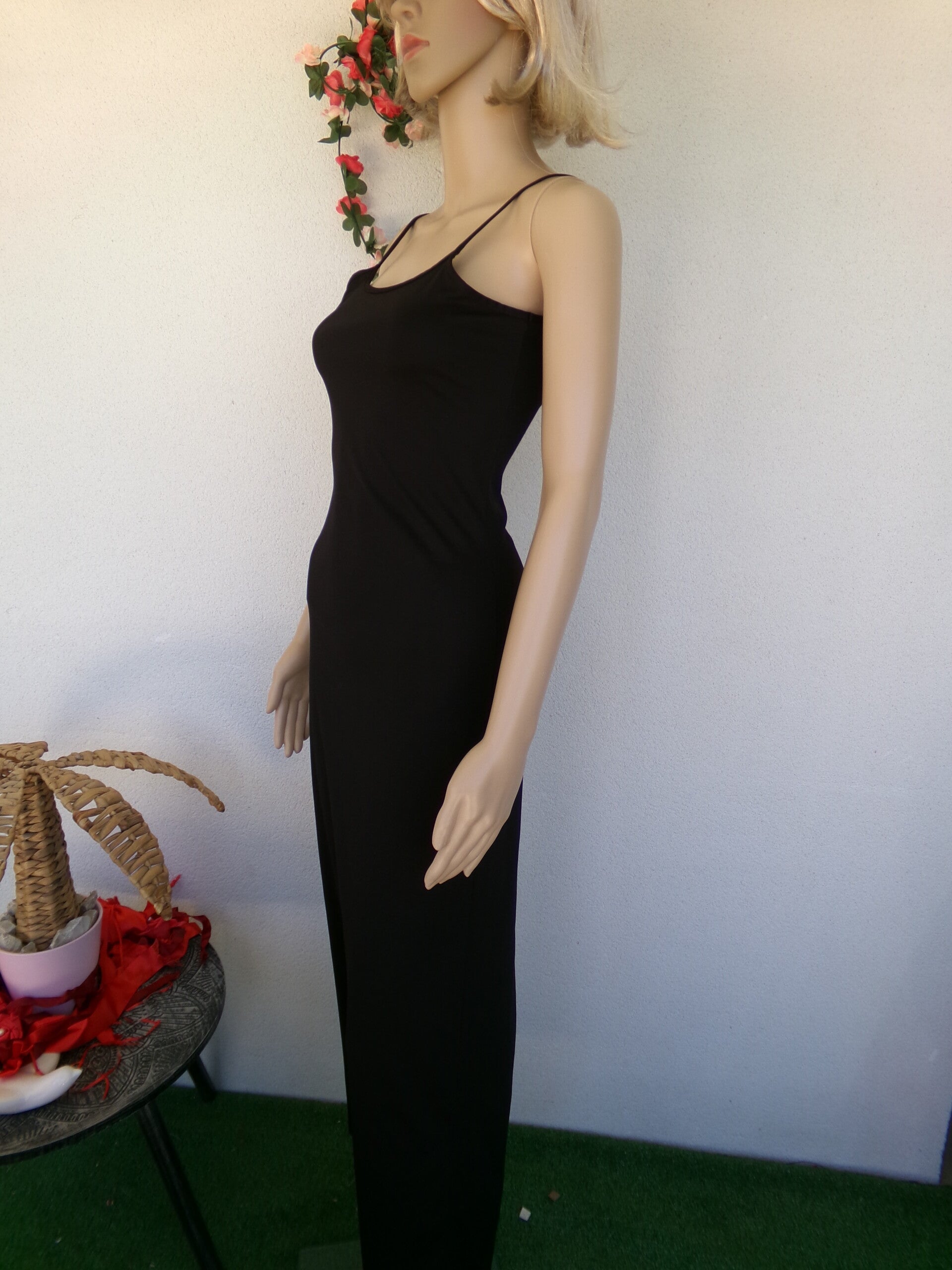 Robe longue fines bretelles stylée Noir Neuf