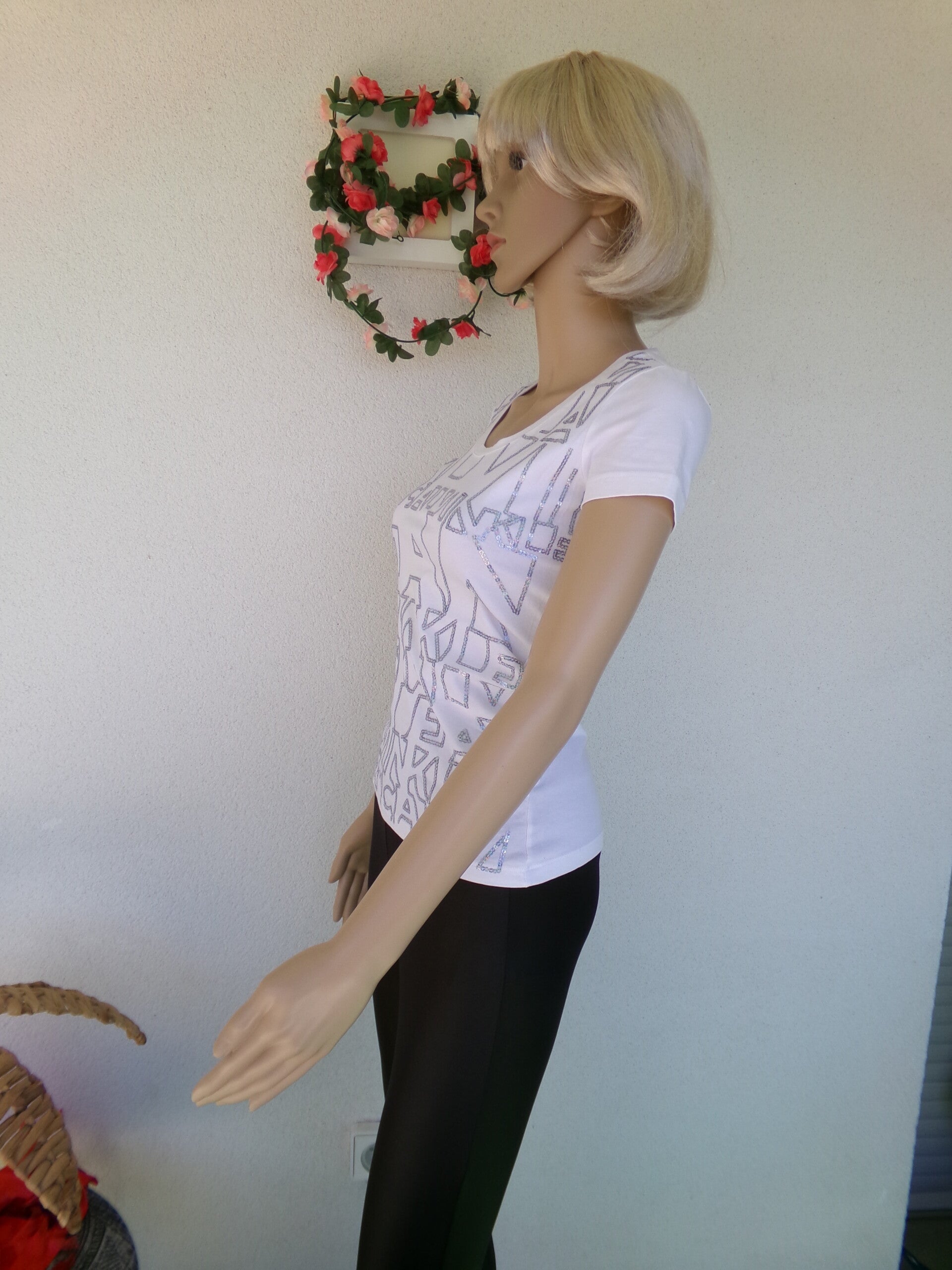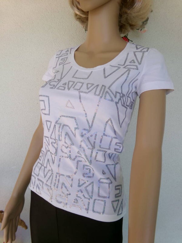 Haut plus qu'un simple Tee Shirt CALVIN KLEIN avec brillance ultime géométrique devant, sublimissime !
