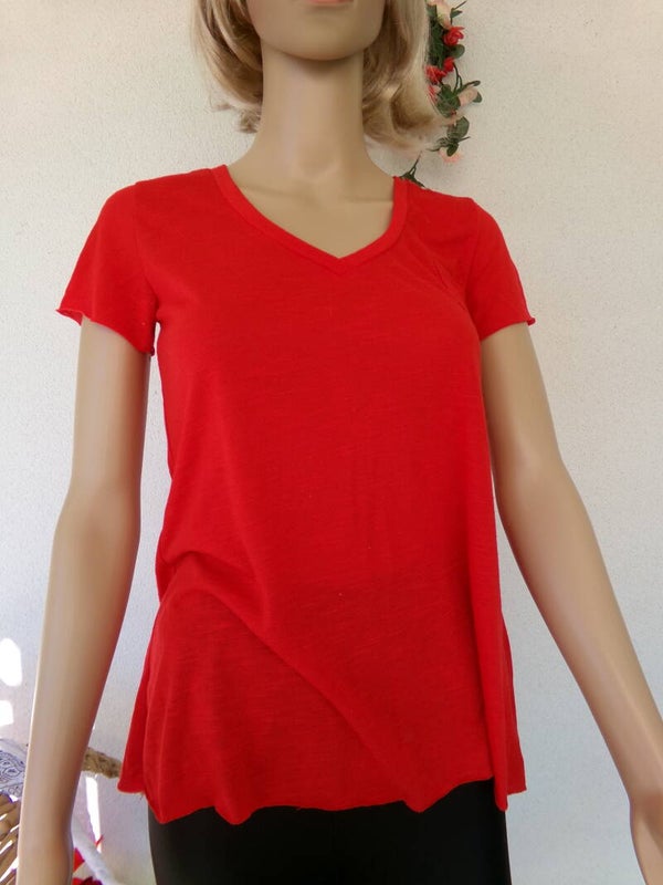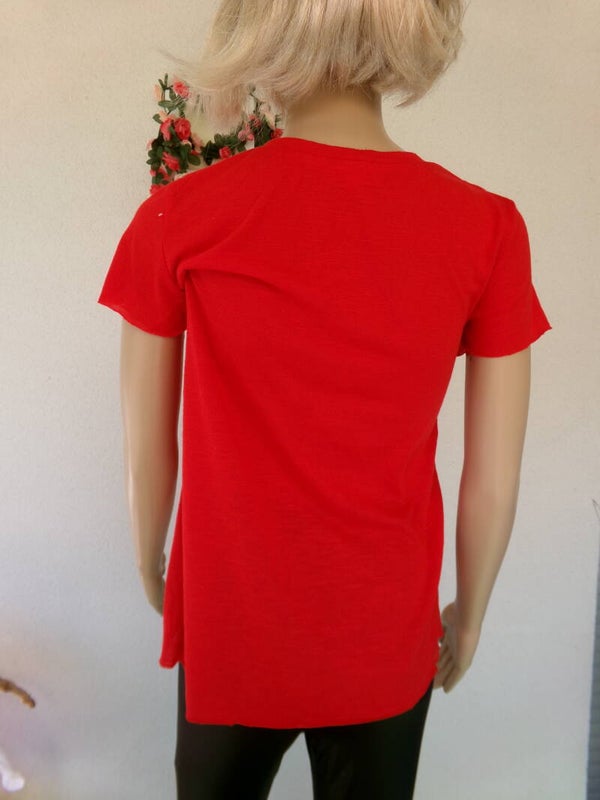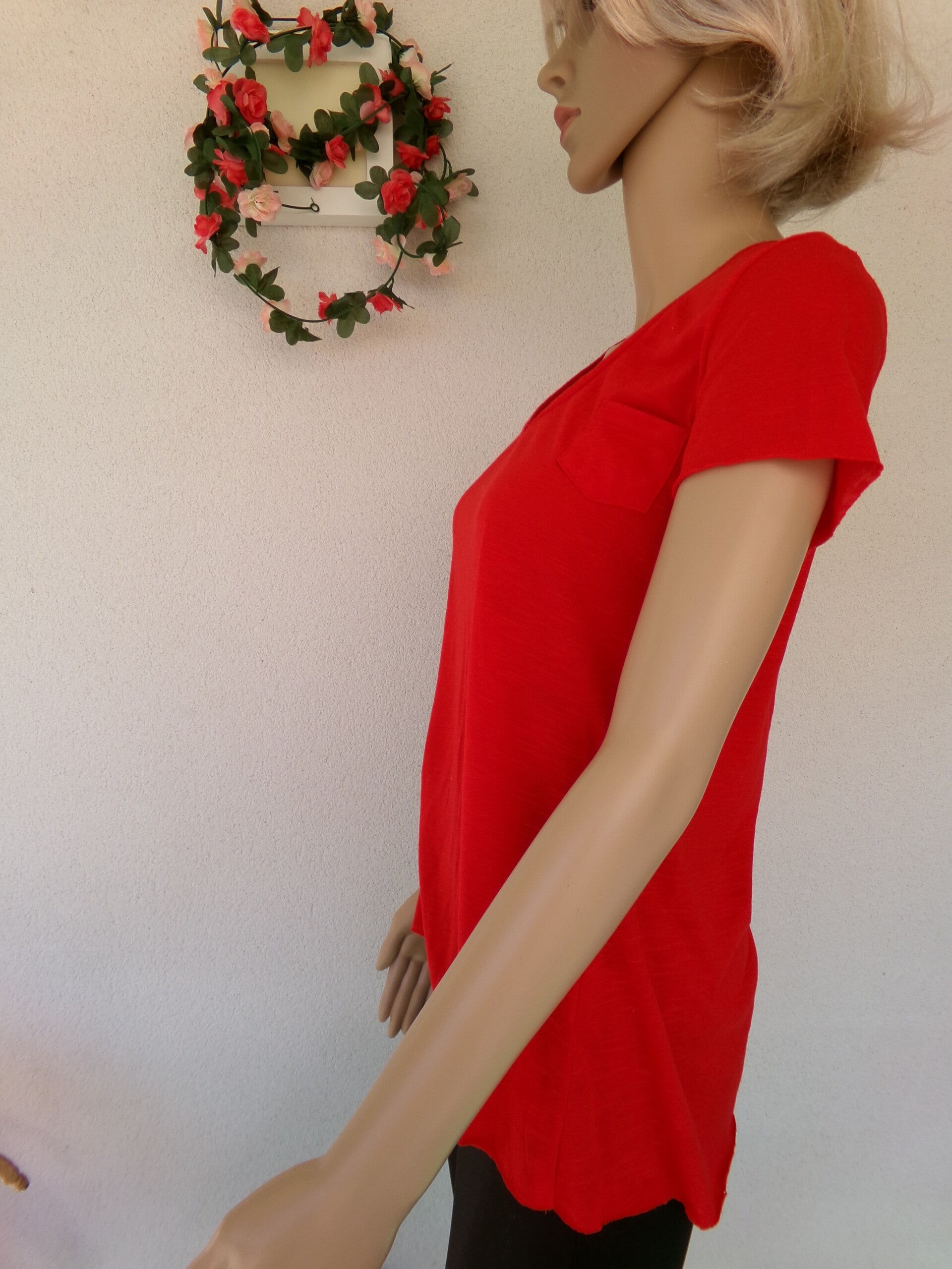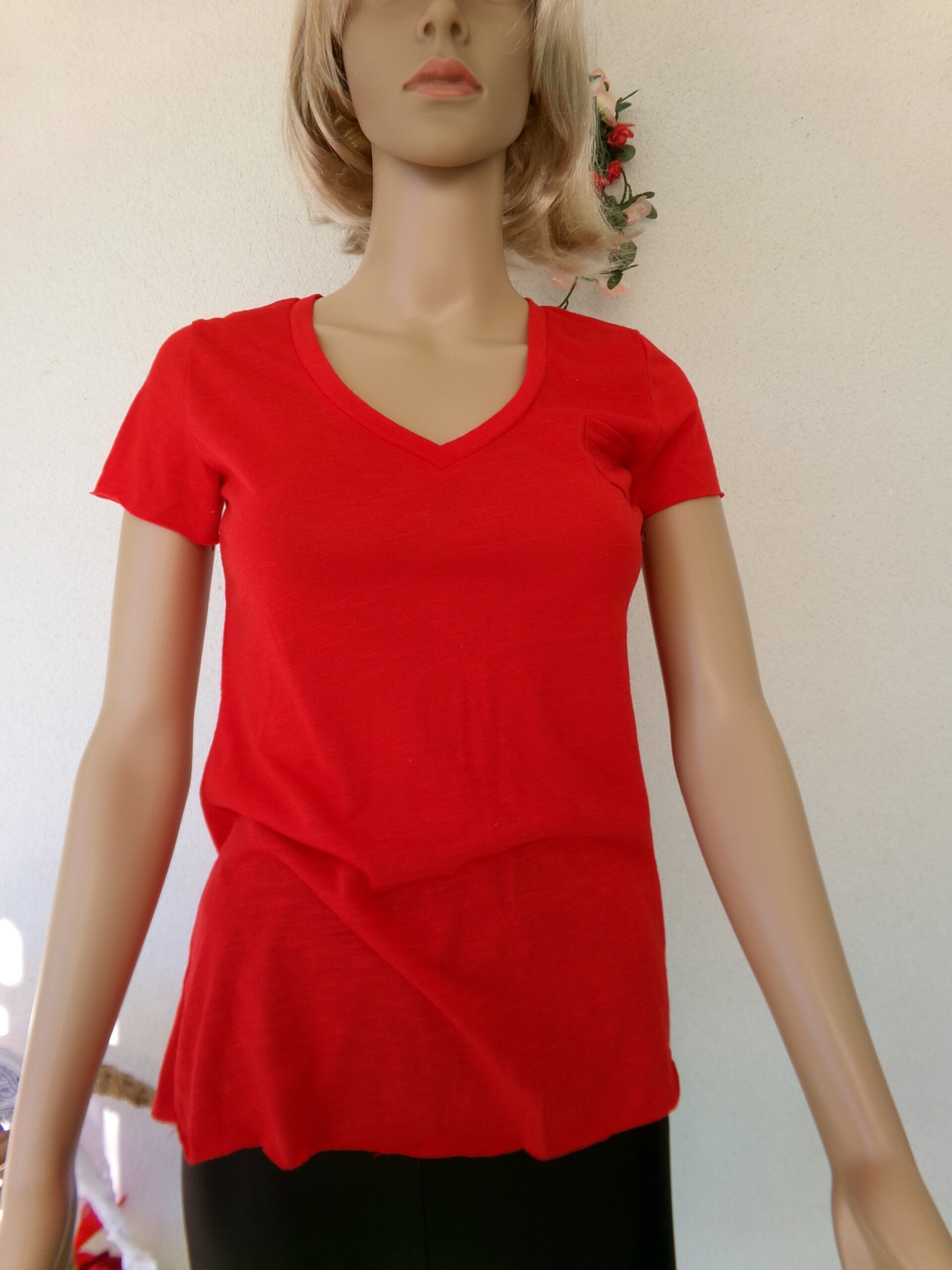 Haut Tee Shirt Col V avec une petite poche Rouge éclatant Taille Unique Marque PURPLE QUEEN