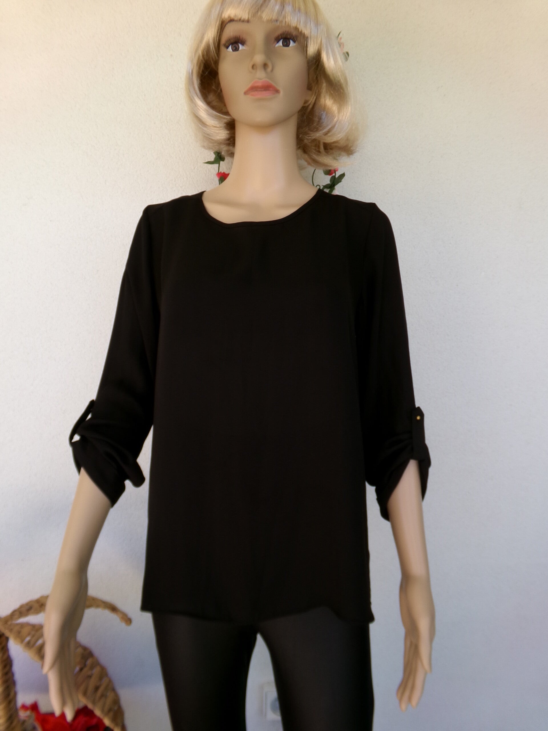 Chemise Couleur noir Stylée, très fluide, élégante, col rond, fermeture éclair au dos, vous l'aimerez au premier coup d'oeil !