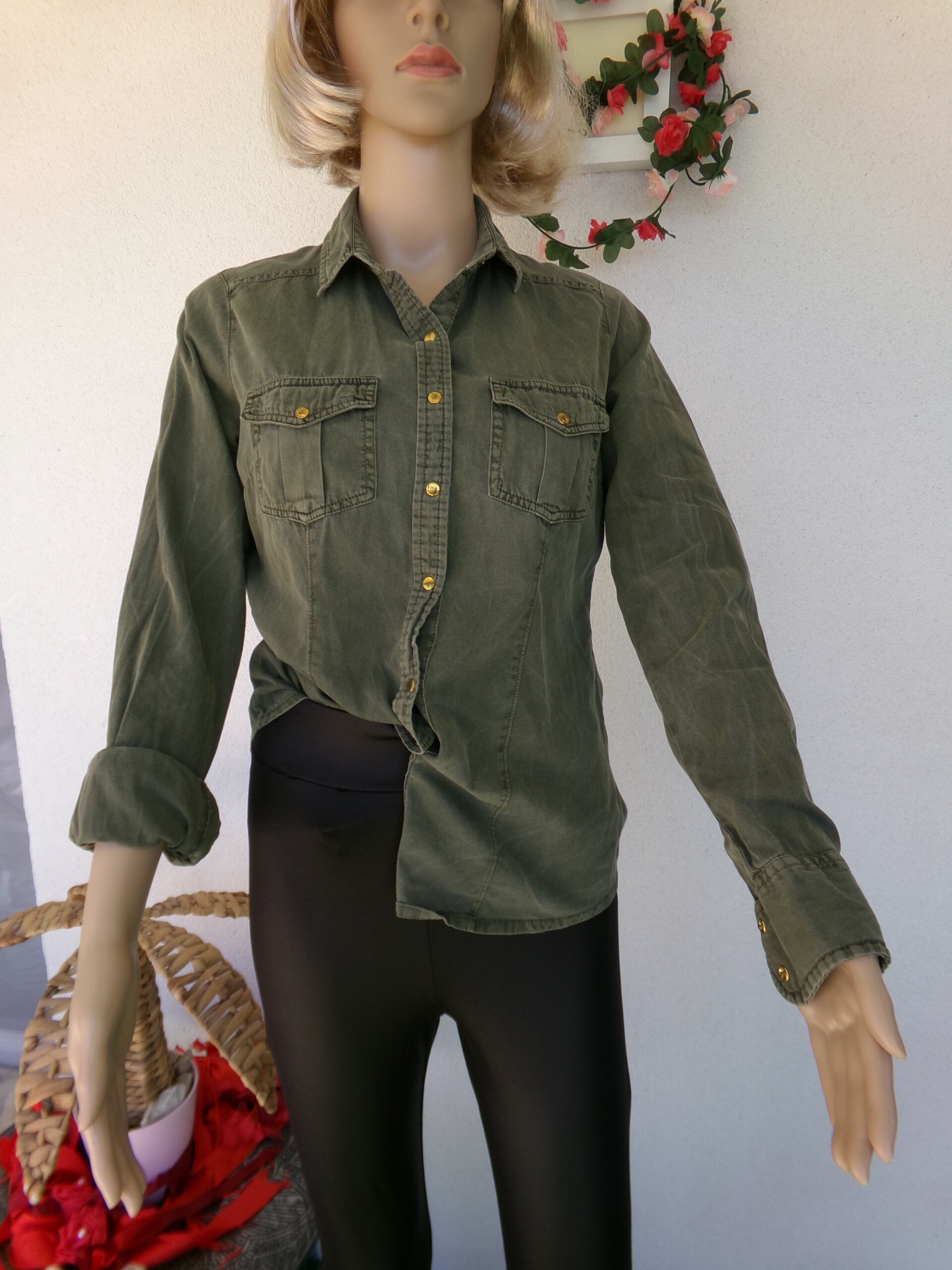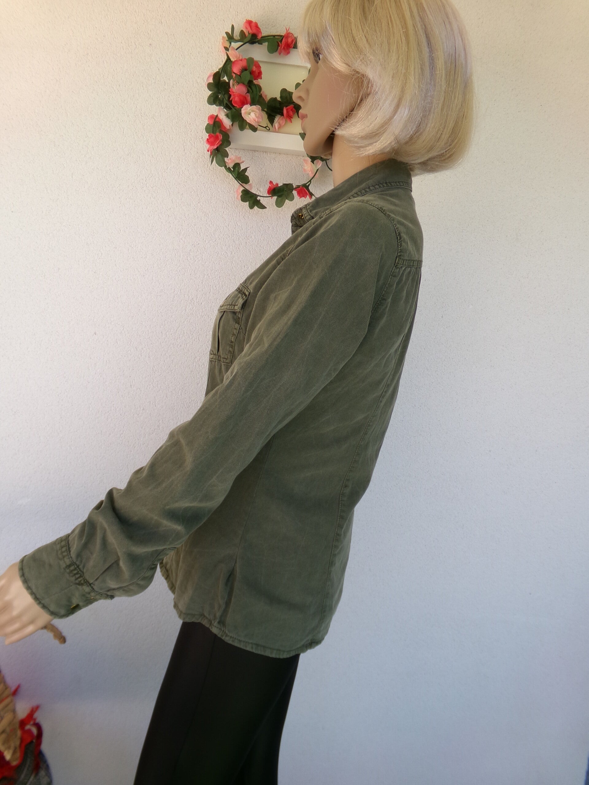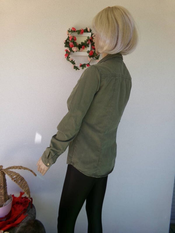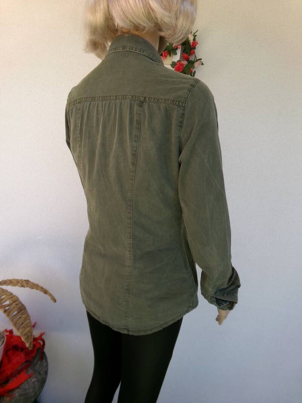 Chemise Kaki Très jolie, lègère, peut se porter seule ou ouverte avec un top ou brassière, ou autre selon vos envies du moment ! Vous serez unik !