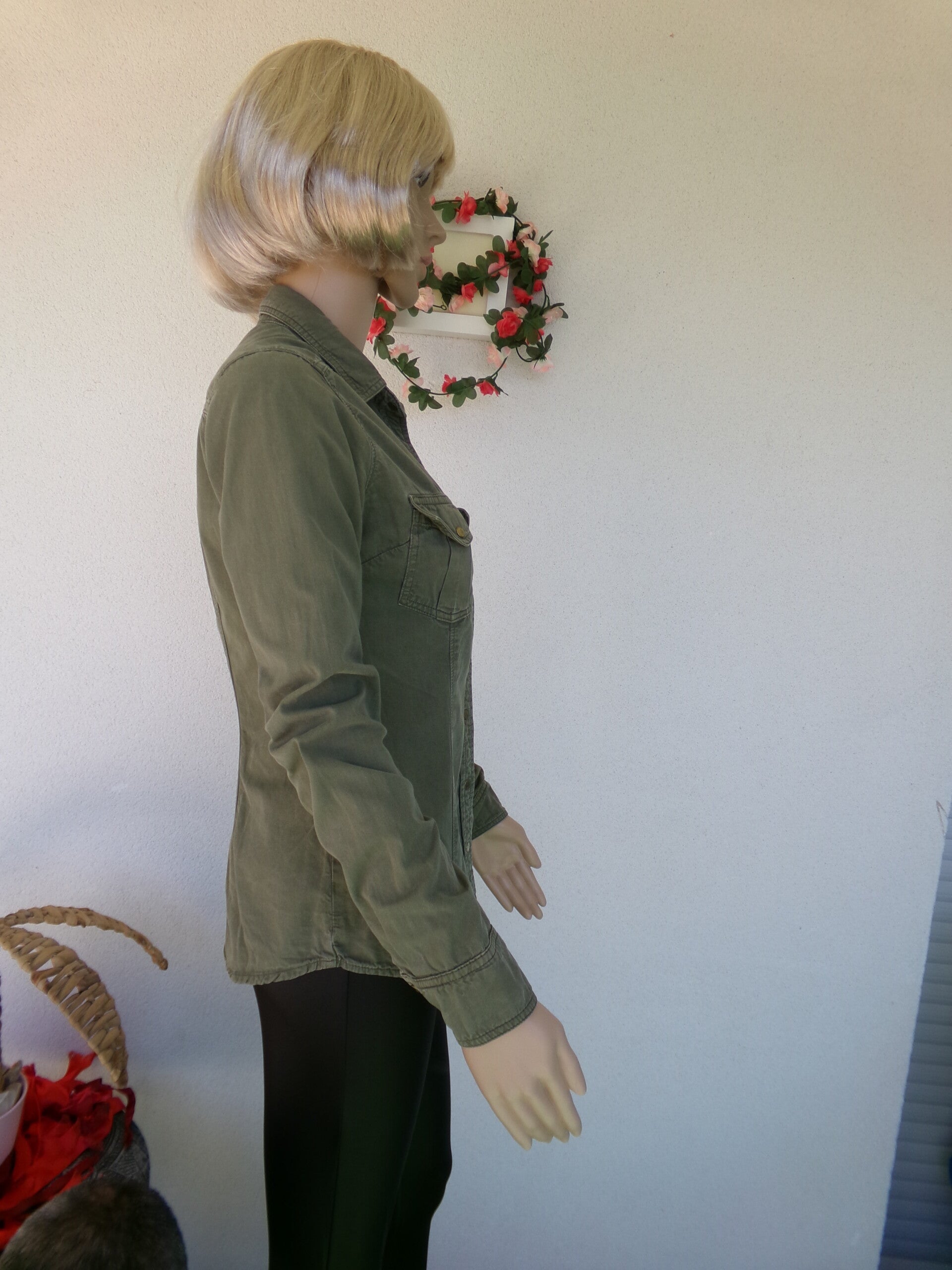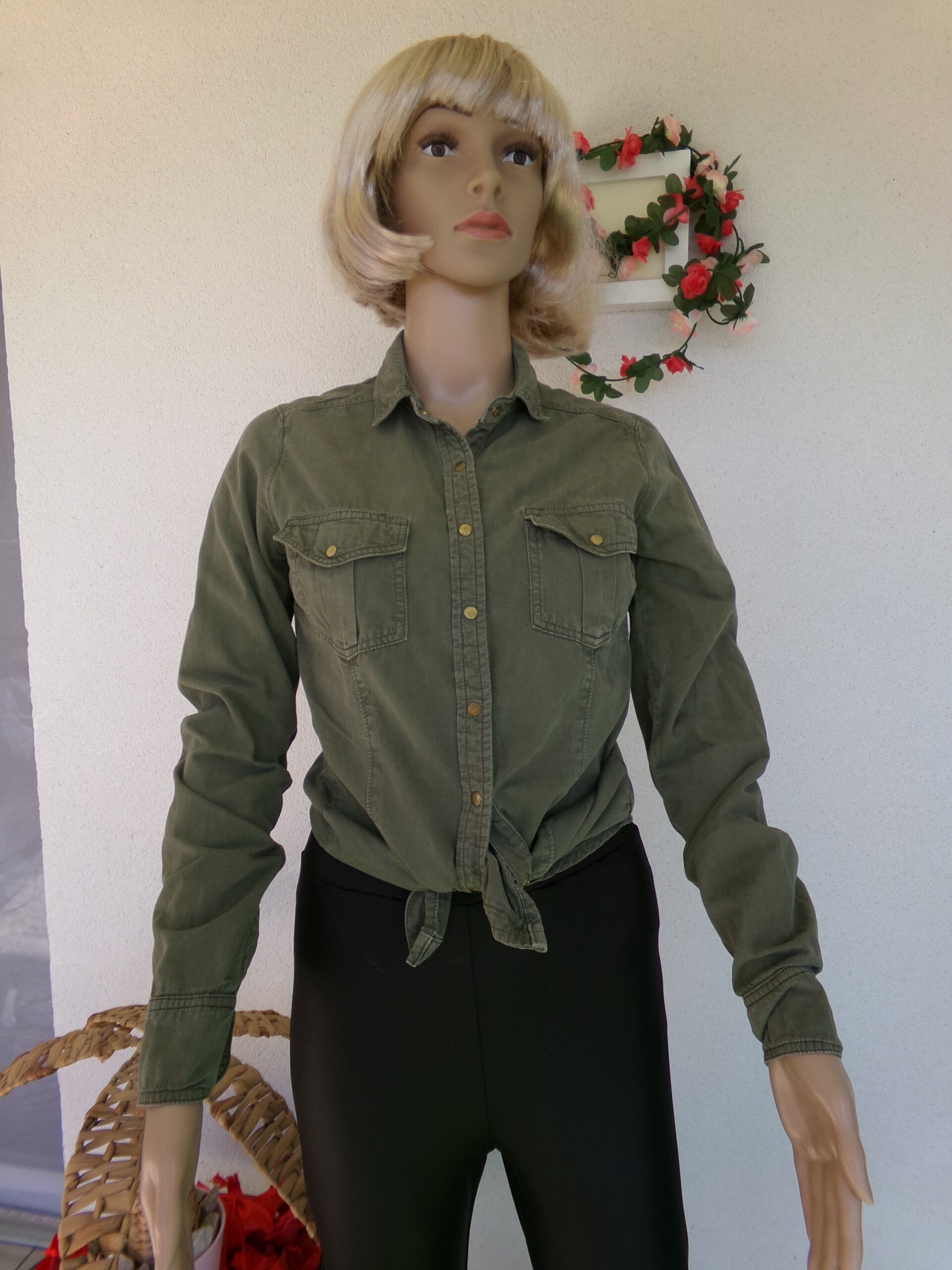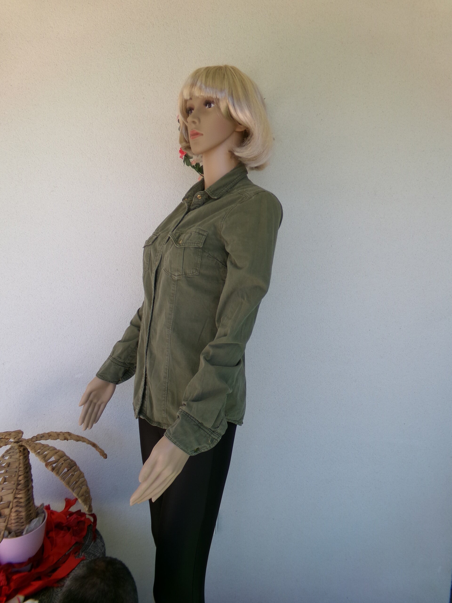 Chemise Kaki Très jolie, lègère, peut se porter seule ou ouverte avec un top ou brassière, ou autre selon vos envies du moment ! Vous serez unik !