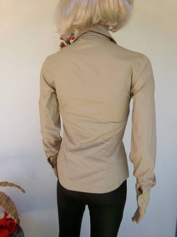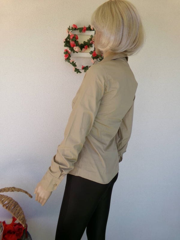 Chemise beige lègère, longues manches, très joli, courte, coupe sérrée, vous ne passerez pas inaperçu !