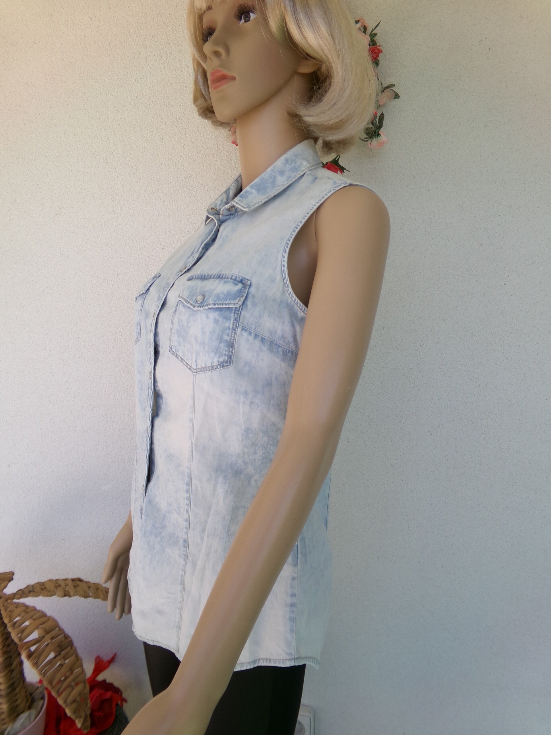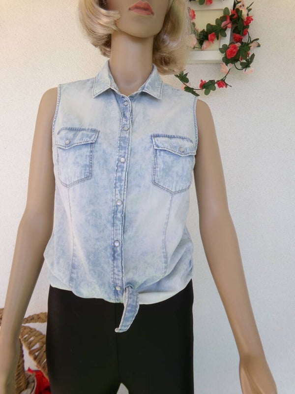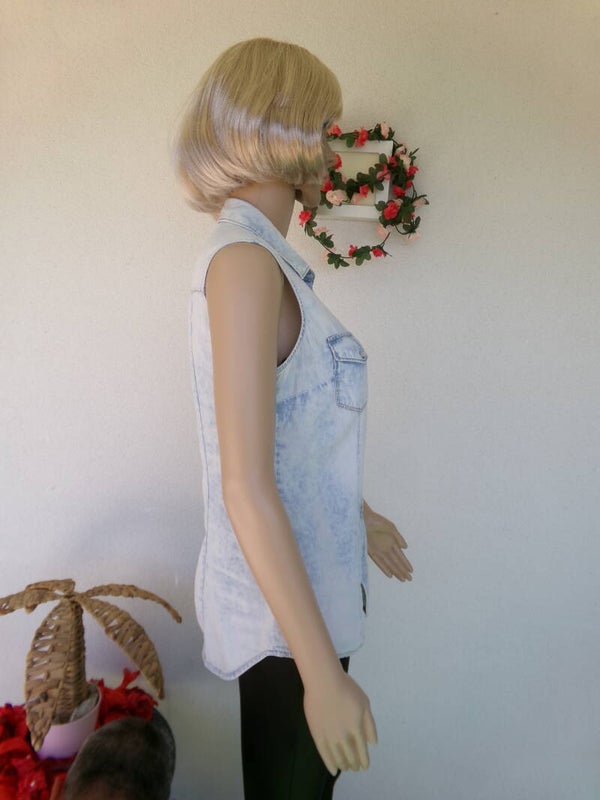 Chemise sans manche blue délavée, sublime, légère, originale, fermeture à pression, vous serez sublime !