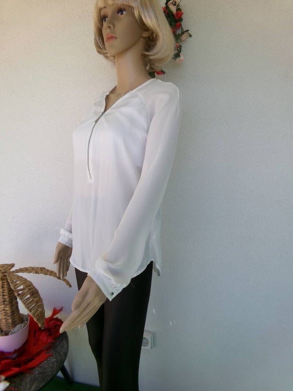Chemise fluide couleur blanc, fermée par fermeture éclair, que l'on peut positionner comme l'on veut, un petit bijou !
