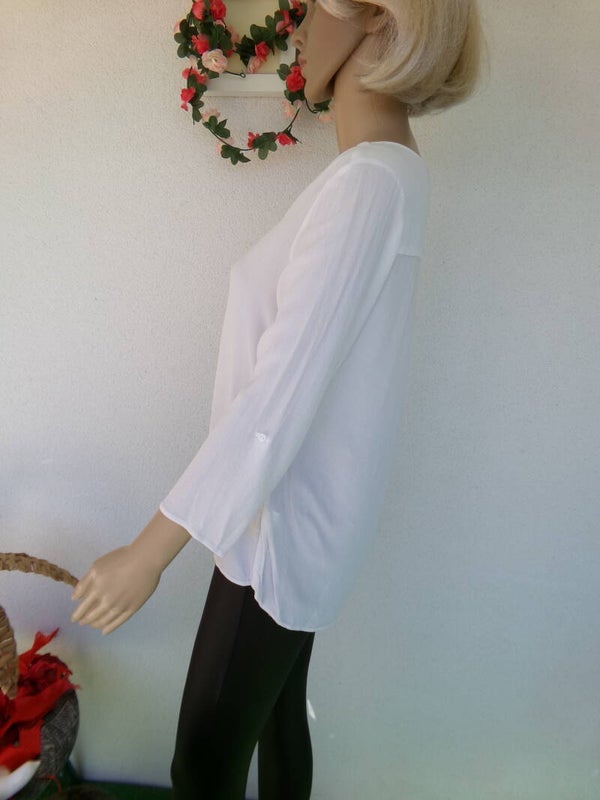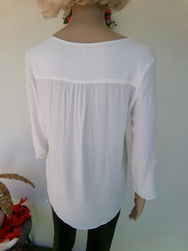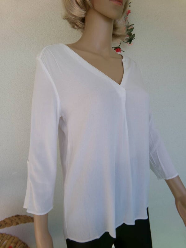 Chemise couleur blanc Col V, très joli, matière magnifique, manches remontables, un petit bijou !