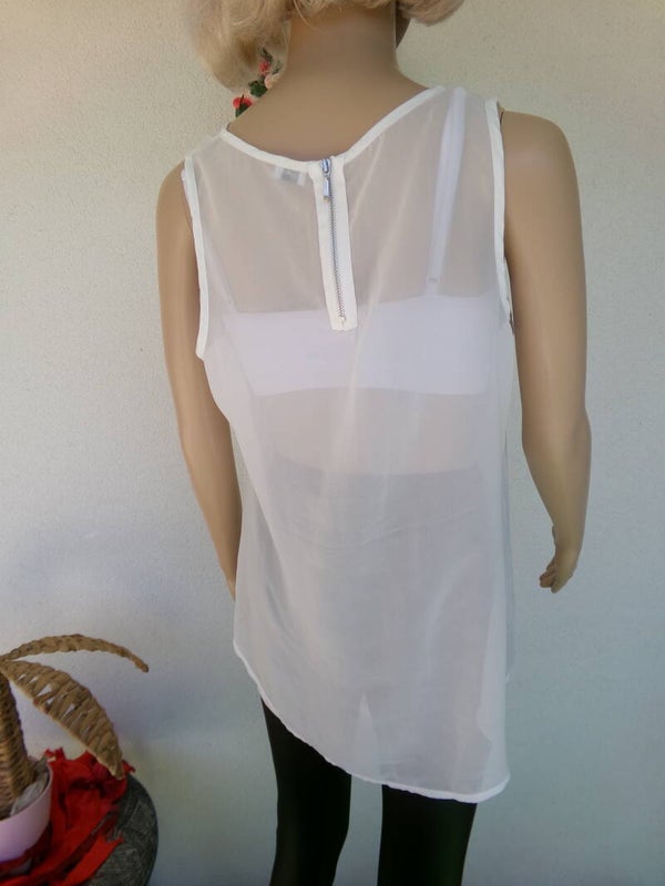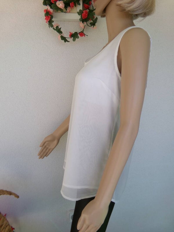 Haut sans manche original, doublé entièrement devant, ce qui lui donne son côté glamour et stylé, un petit bijou !