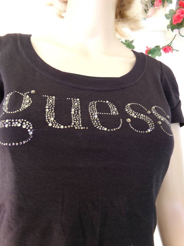 Tee Shirt GUESS noir élégant à petites manches près du corps noir MARQUE GUESS TAILLE S