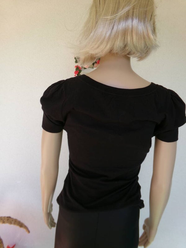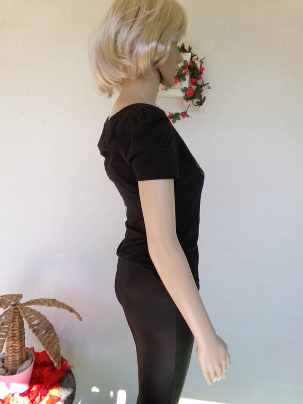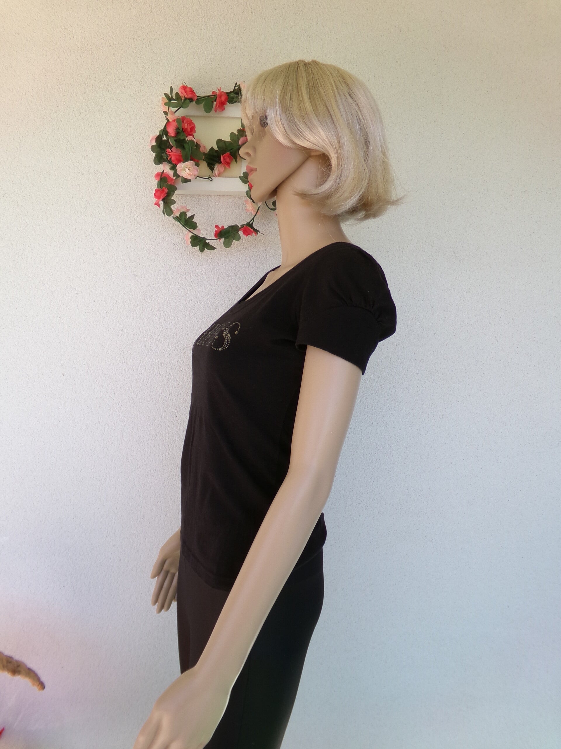 Tee Shirt GUESS noir élégant près du corps à souhait, petites manches ballons mignonnes !