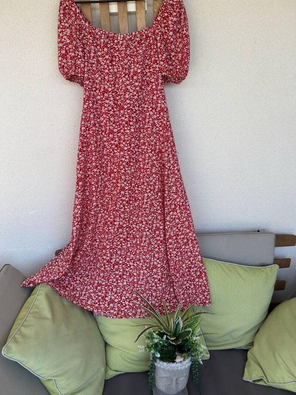 Robe mi-longue fendu sexy et rafraichissante Rouge blanc Taille L 40-42 Neuf