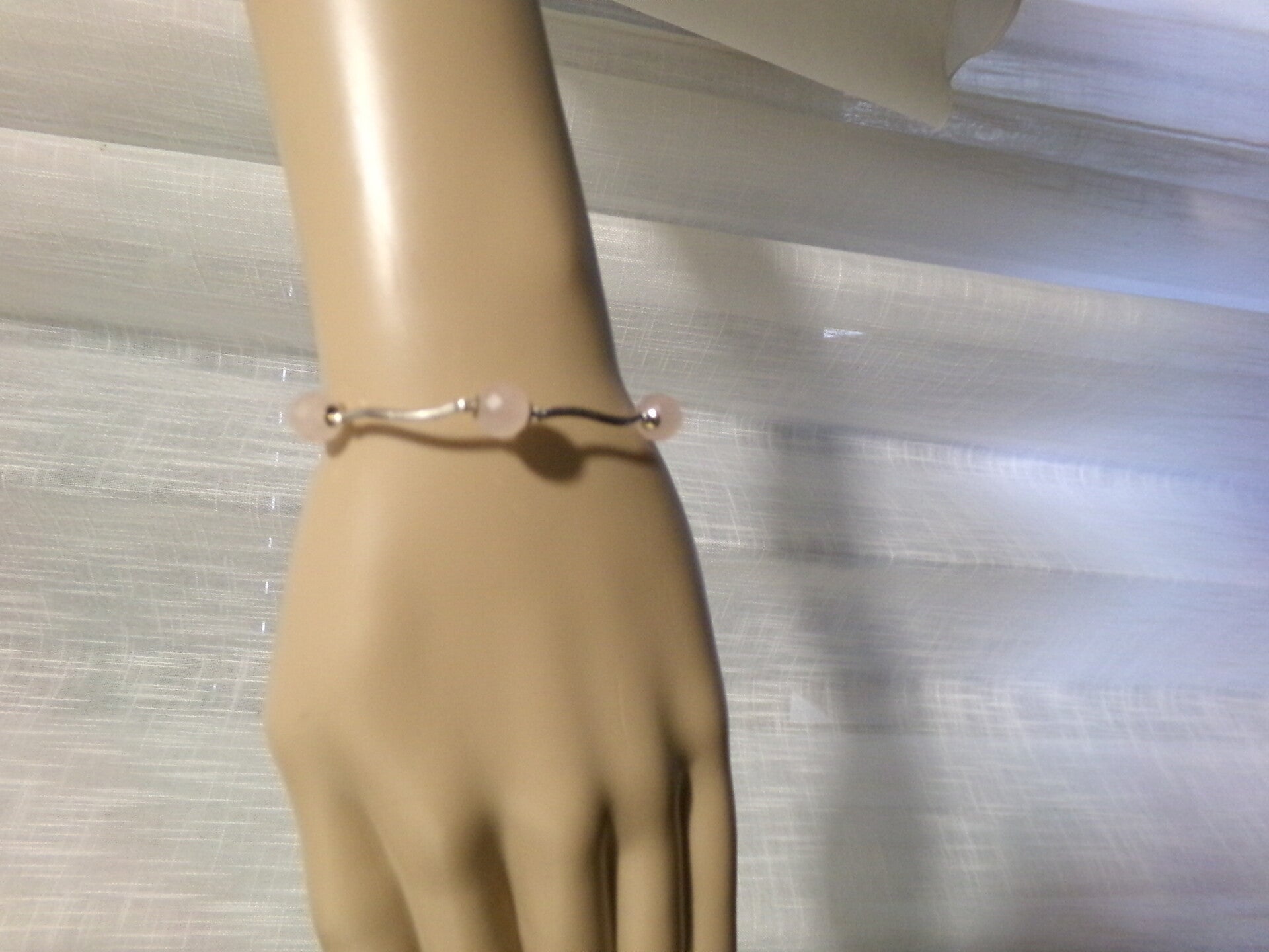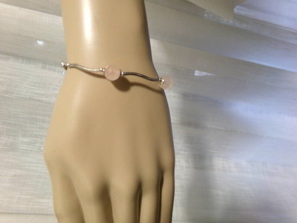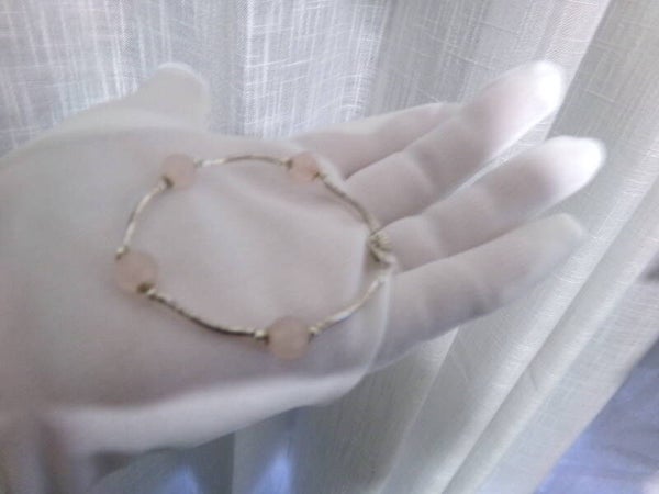 Bracelet artisanal en quartz rose très élégant et original avec ses pierres véritables exagonales !
