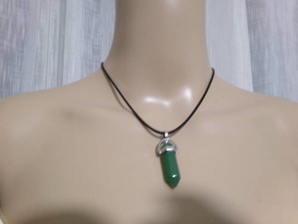 PENDENTIF POINTE 30MM (POINTE) AVENTURINE VERTE HOMME FEMME CORDON CUIR NOIR OU CHAINE AU CHOIX