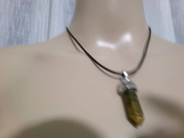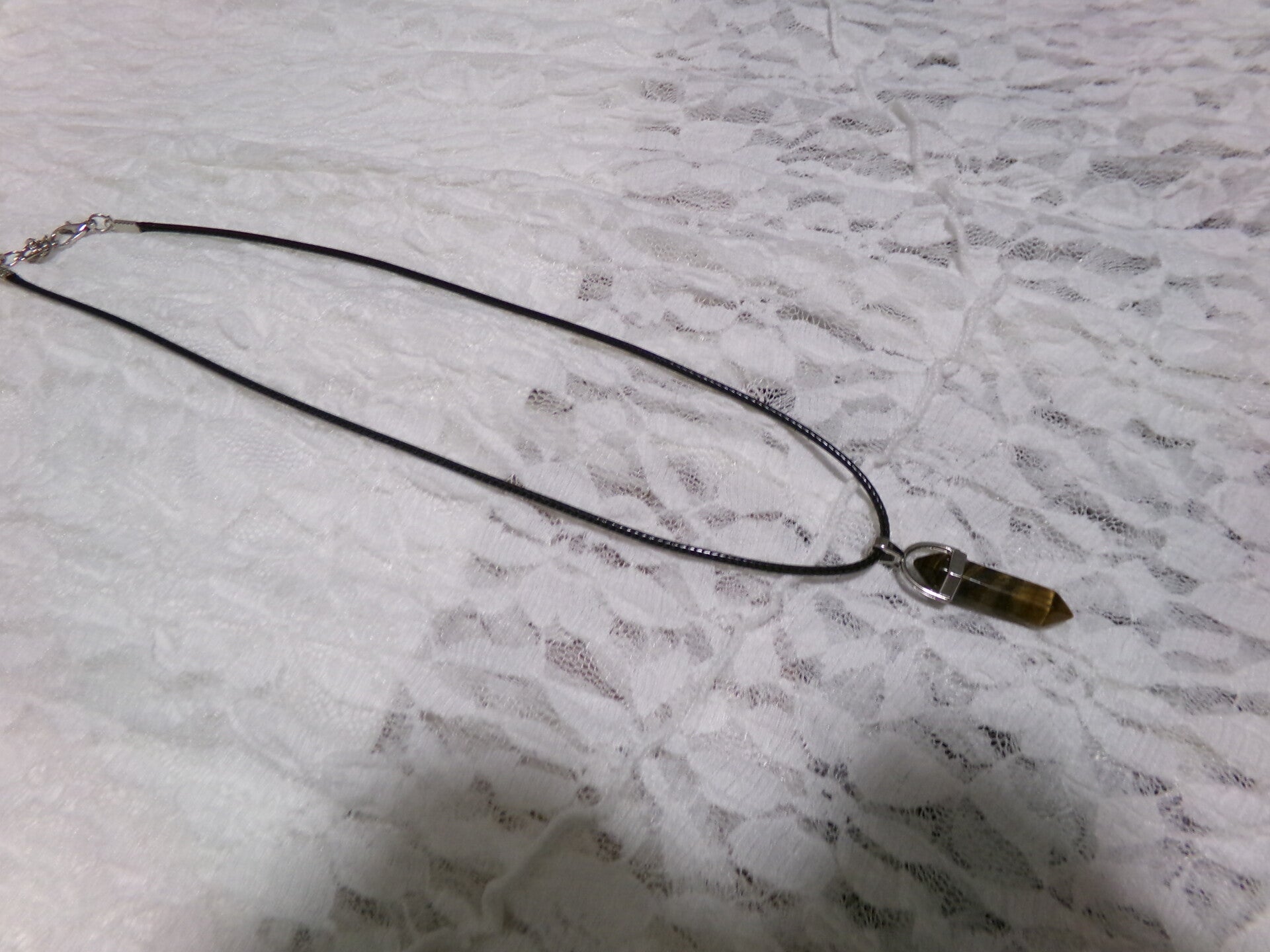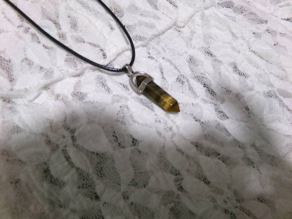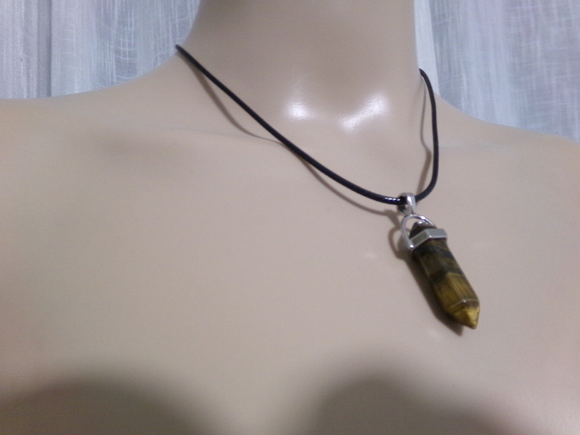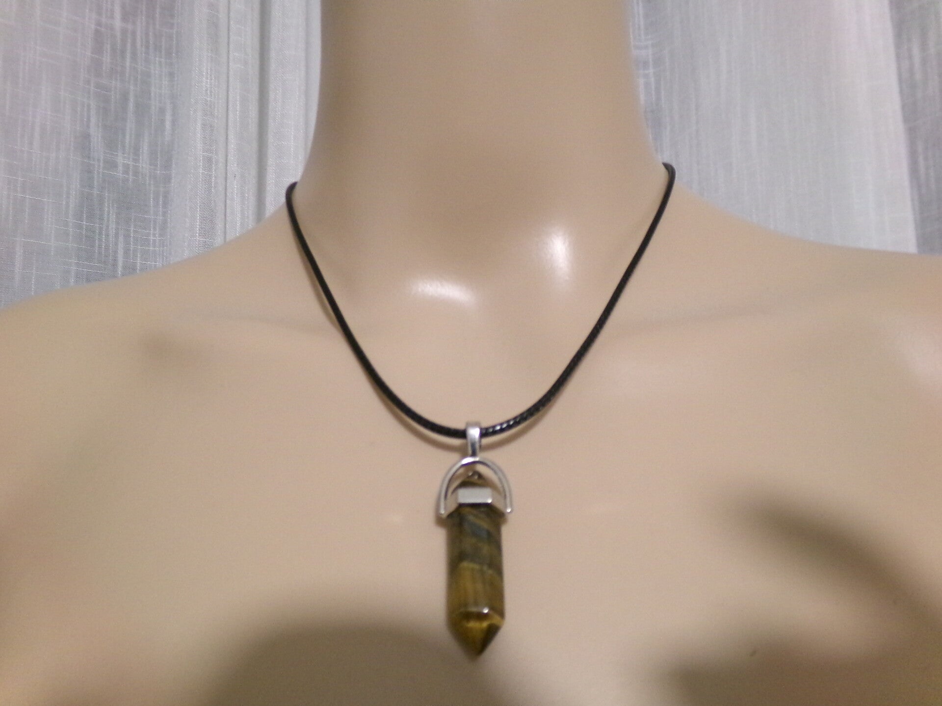 PENDENTIF POINTE 30 MM (POINTE) OEIL DU TIGRE HOMME FEMME CORDON CUIR NOIR OU CHAINE AU CHOIX