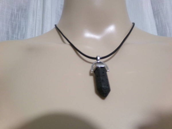 PENDENTIF POINTE 30MM (POINTE) EN PIERRE DE LAVE HOMME FEMME CORDON CUIR NOIR OU CHAINE AU CHOIX