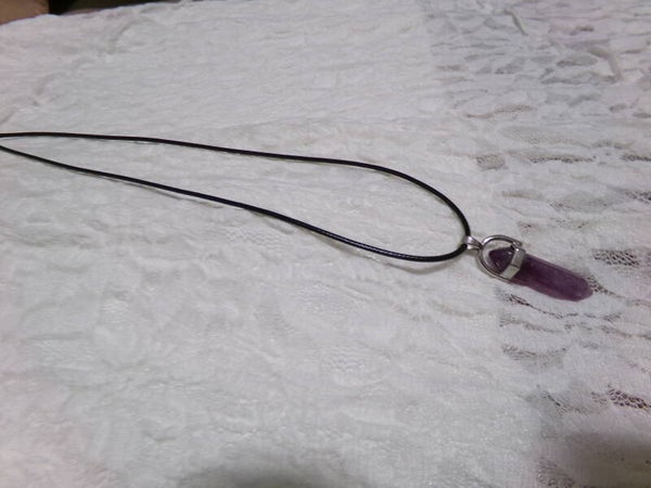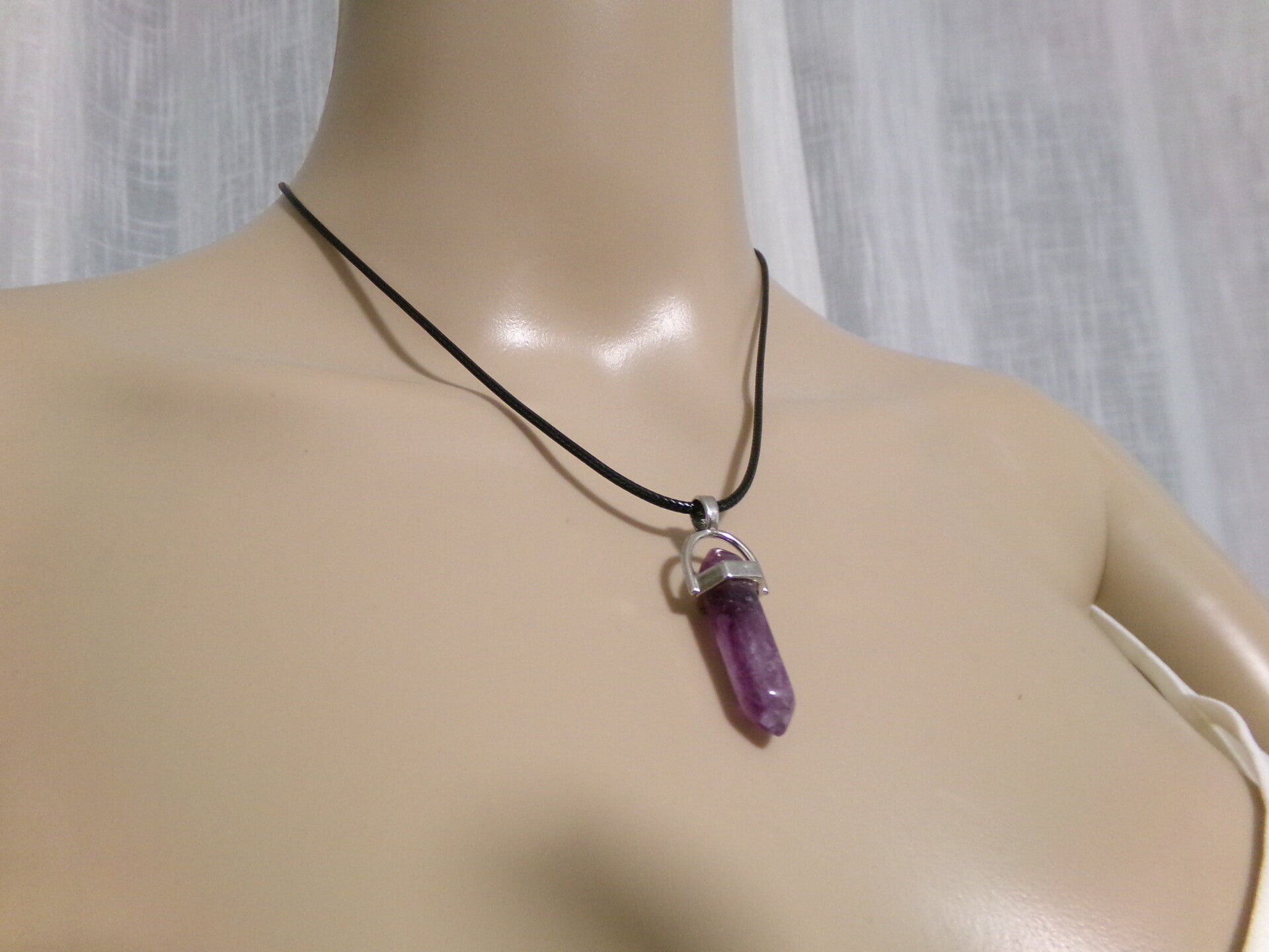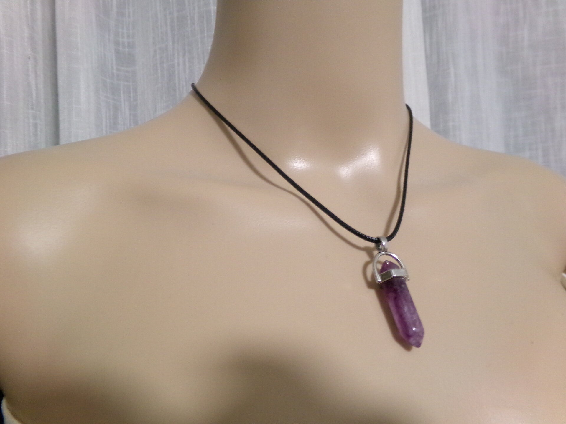 PENDENTIF POINTE 30MM (POINTE) FLUORITE VIOLET HOMME FEMME CORDON CUIR NOIR OU CHAINE AU CHOIX