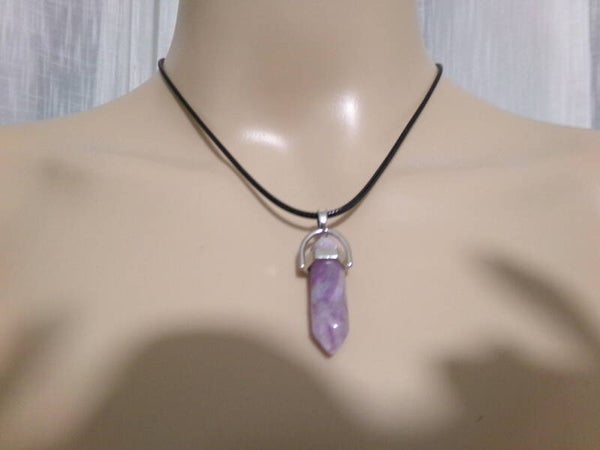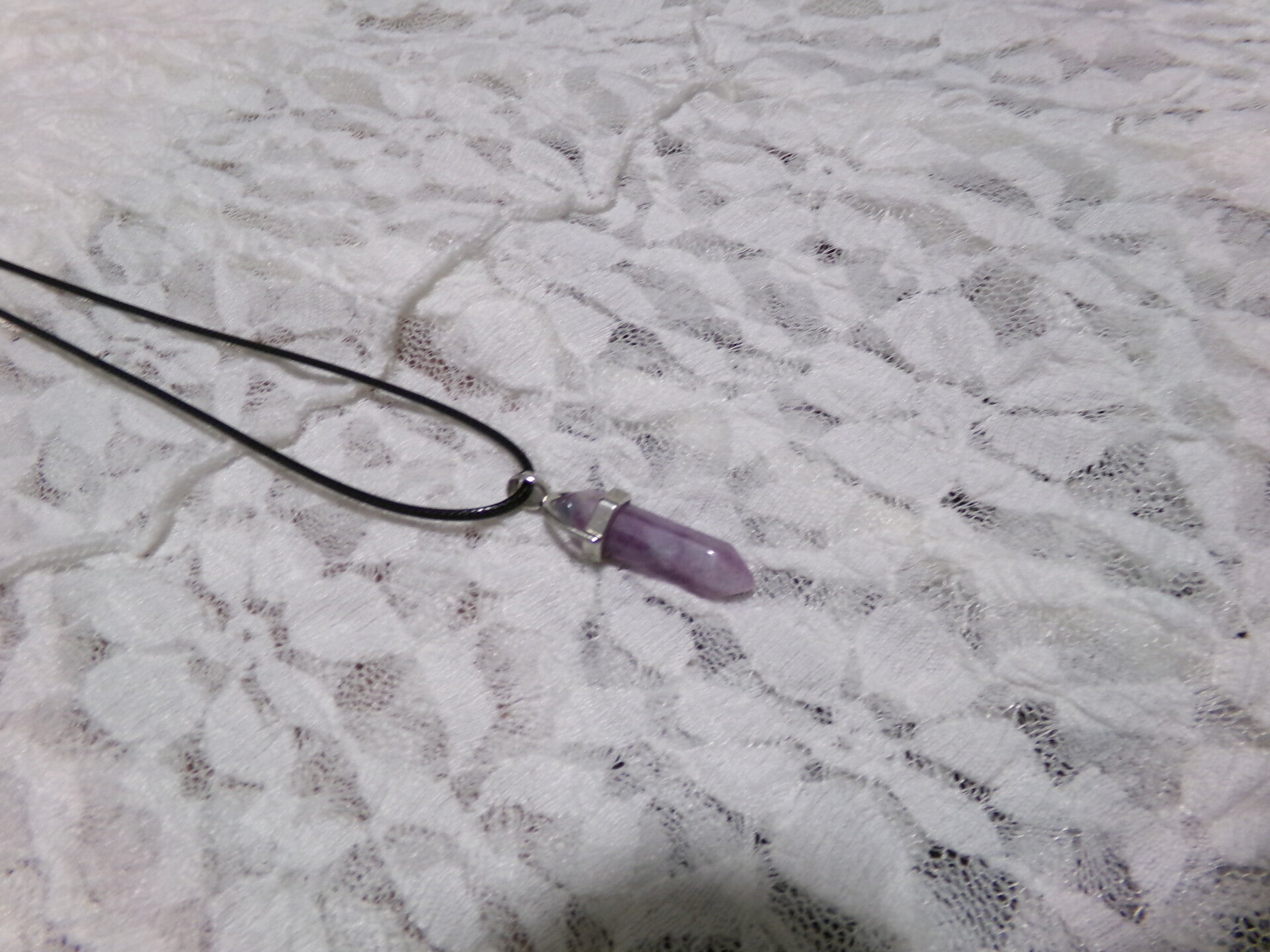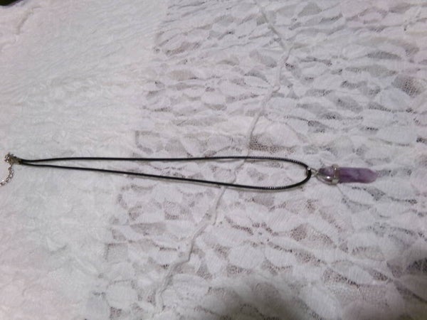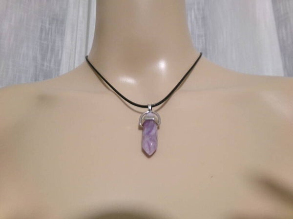 PENDENTIF POINTE 30MM (POINTE) FLUORITE VIOLET TRANSPARENT HOMME FEMME CORDON CUIR NOIR OU CHAINE AU CHOIX