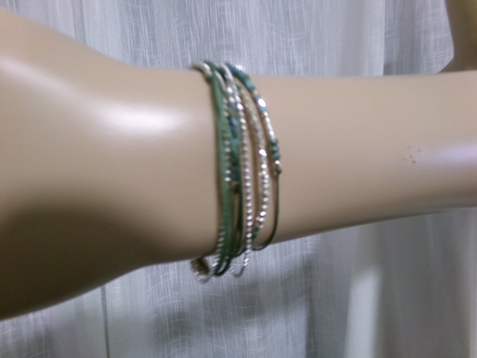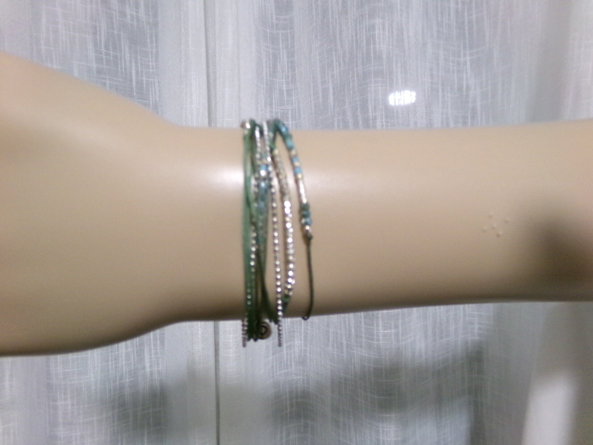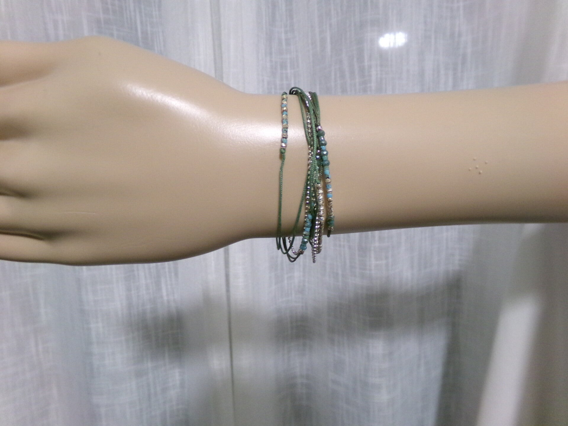 BRACELET 33 CM 5 FILS VERT PLUSIEURS TOURS DE POIGNET