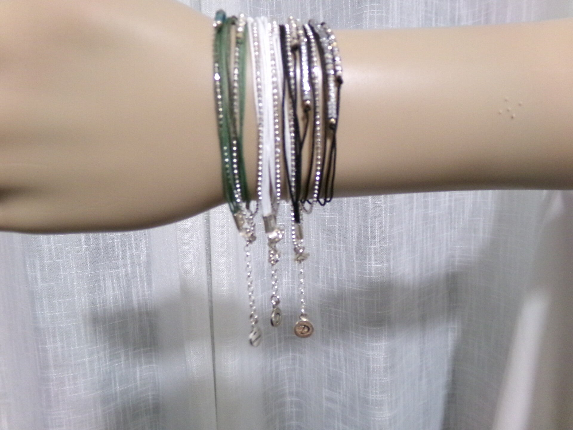 BRACELET DORIANE COULEUR VERT LONGUEUR 33 CM 5 FILS TOUS ORNES UN RENDU SUBLIME