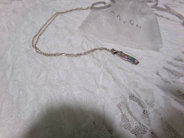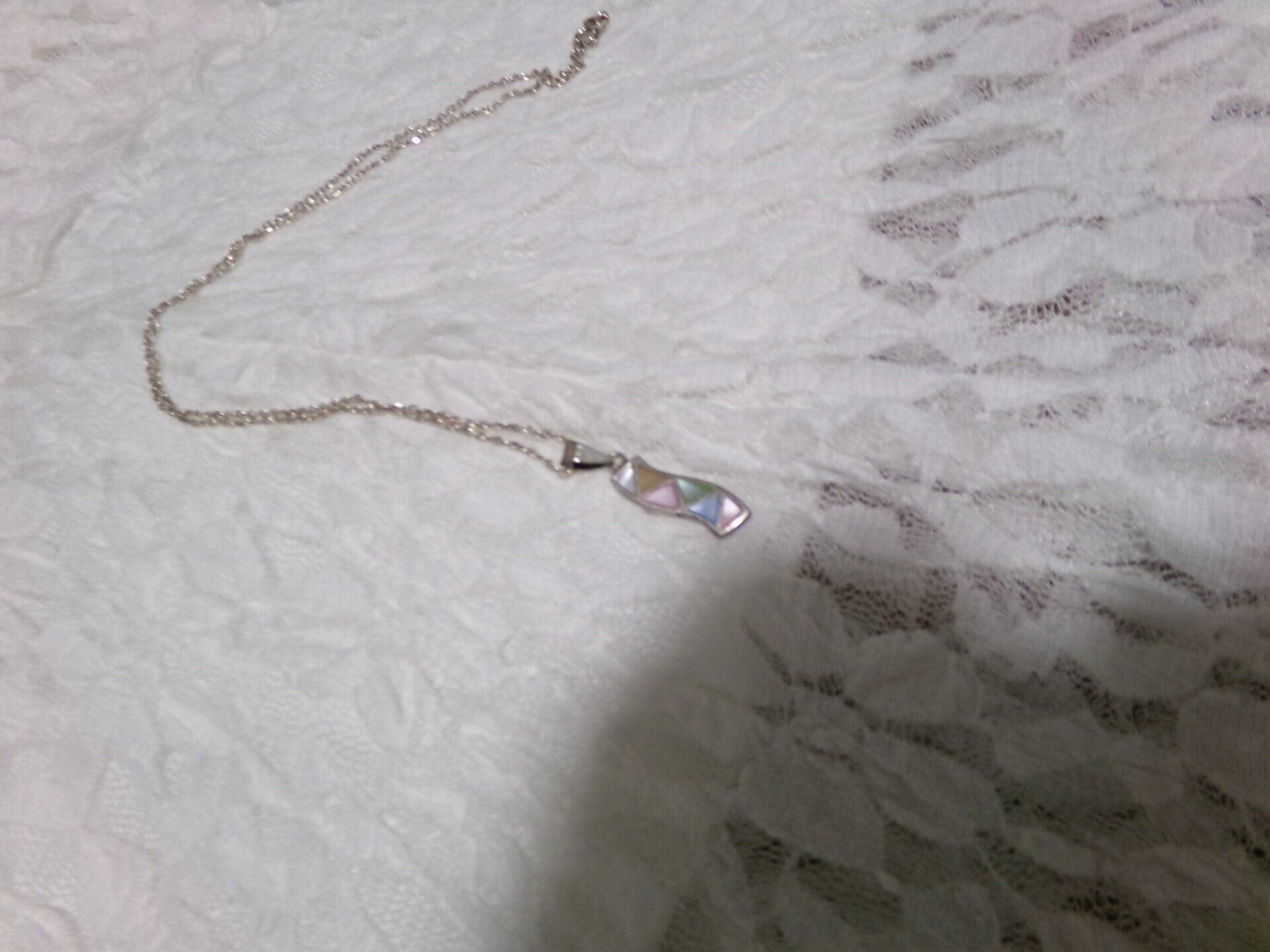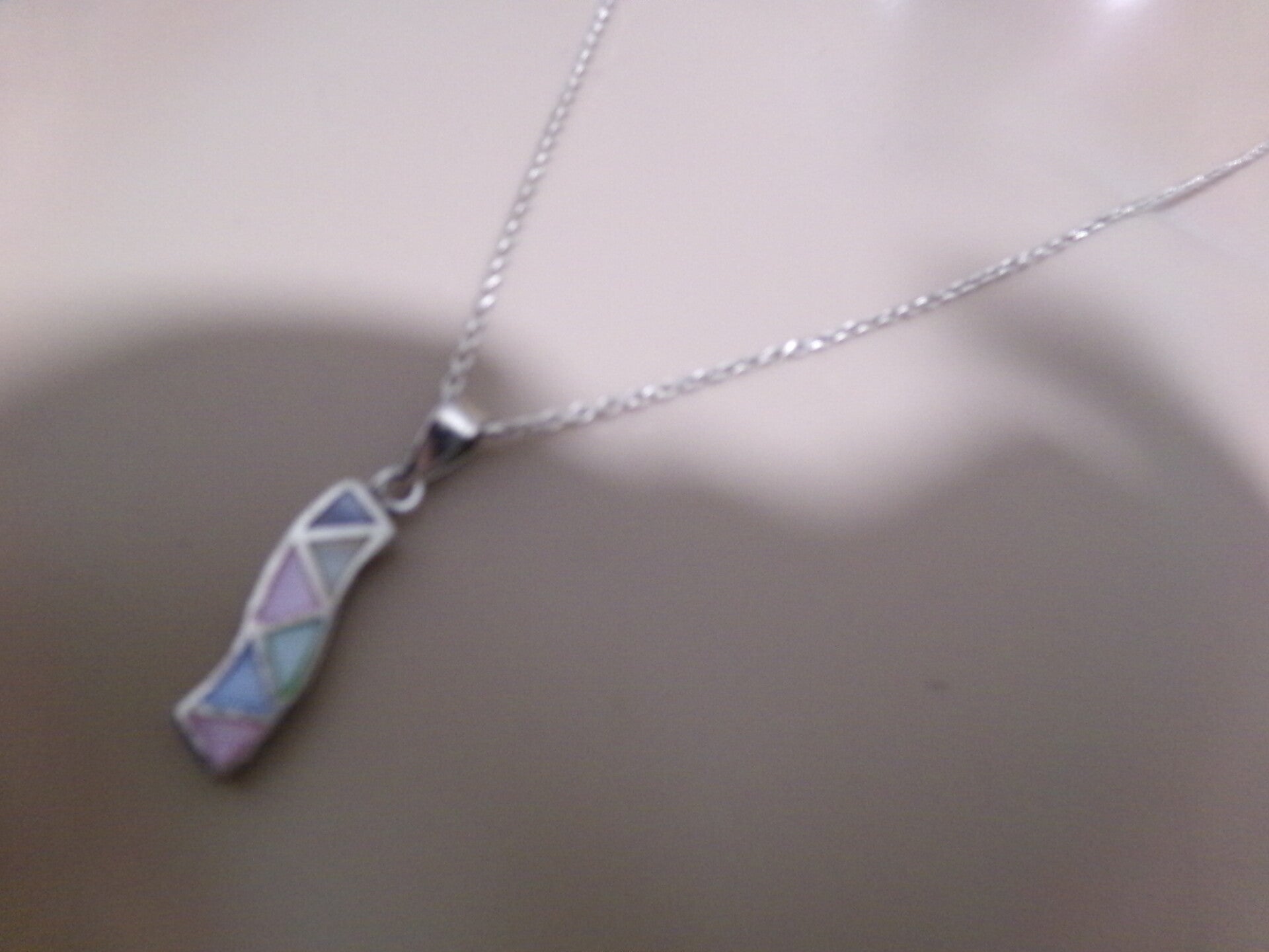 PENDENTIF PAR SA FORME ORIGINALE poinçonné DE 20 MM AVEC ECLATS PASTELS CHAINE 50 CM EN PLAQUE