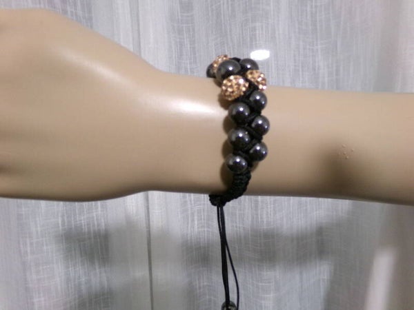 BRACELET ONYX 10 MM DOUBLE RANGEE ET PIERRE BRILLANTE COLORE GRAND AJUSTABLE 17-23 FEMME