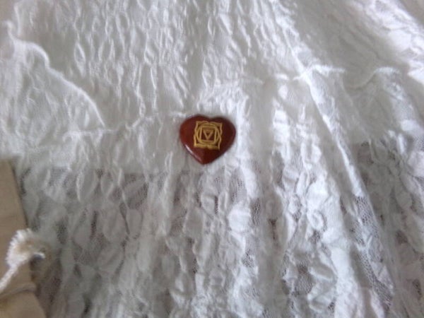 Amulette COEUR en Jaspe Rouge, Veritable Fétiche qui accorde une protection associé à son Icône De Muladhara magnifiquement dorée sur le dessus.