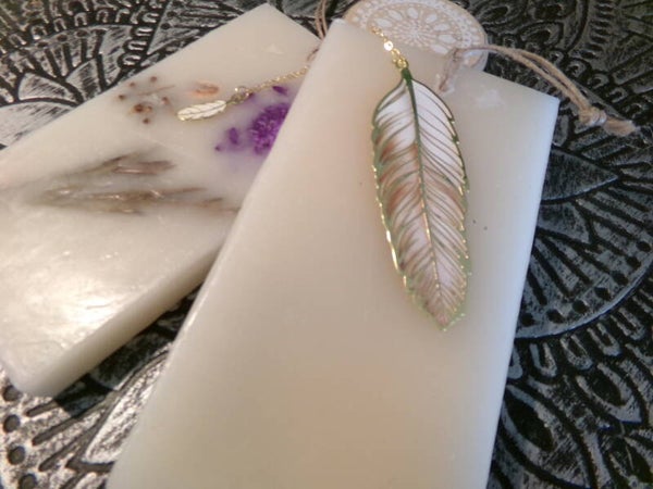 MARQUE PAGE Métal PLUME FINITION OR COULEUR DOMINANT DE BLANC