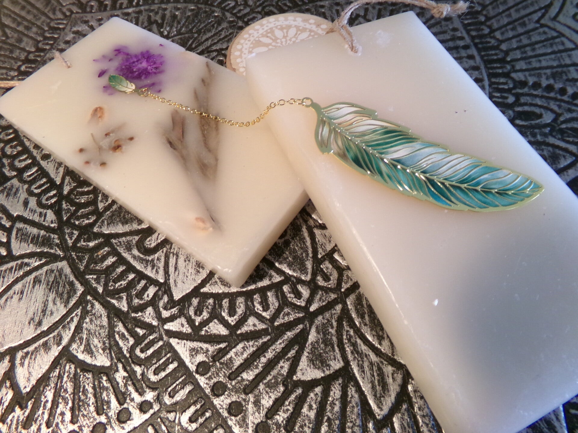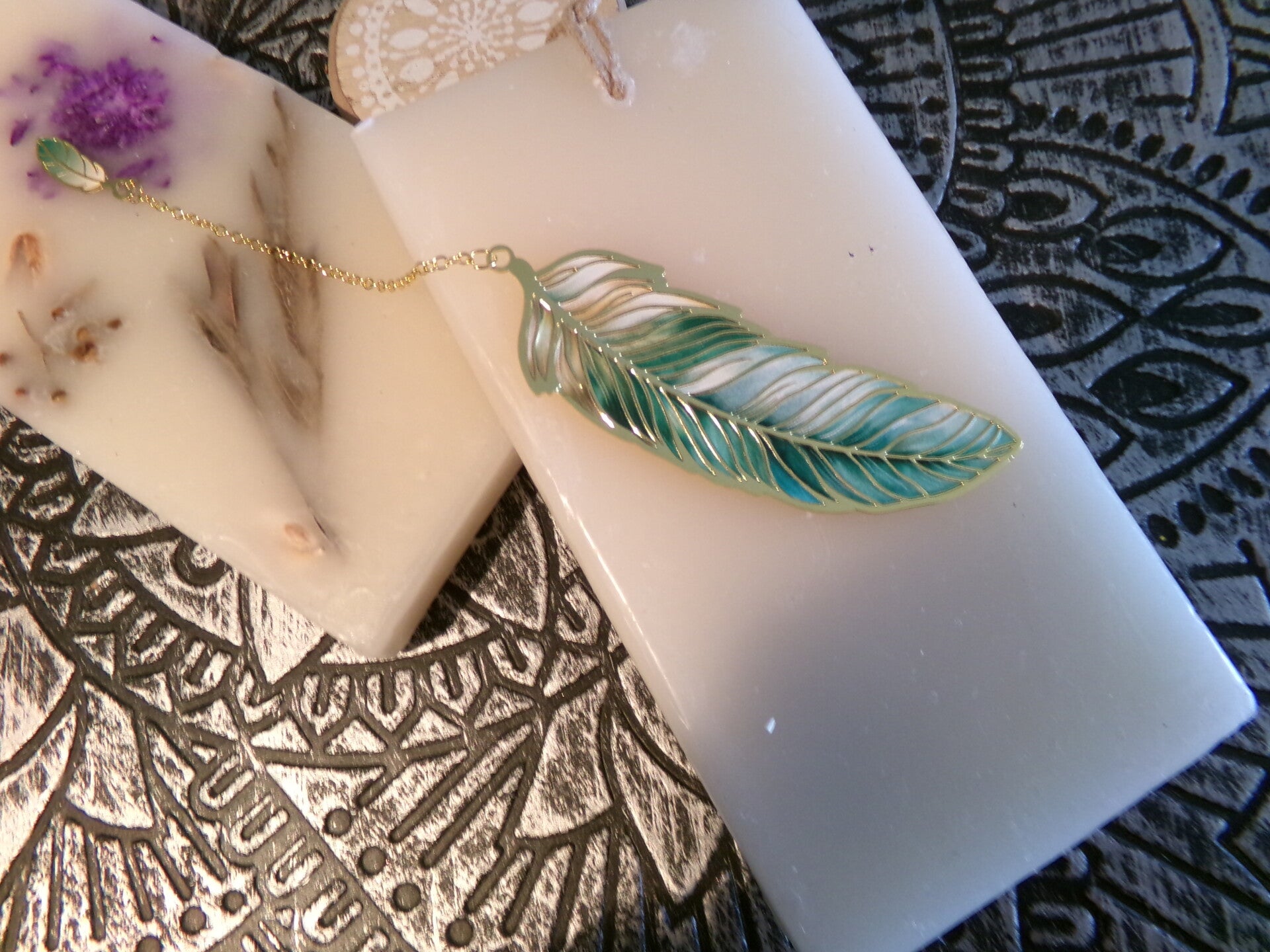 MARQUE PAGE Métal PLUME FINITION OR COULEUR VERT